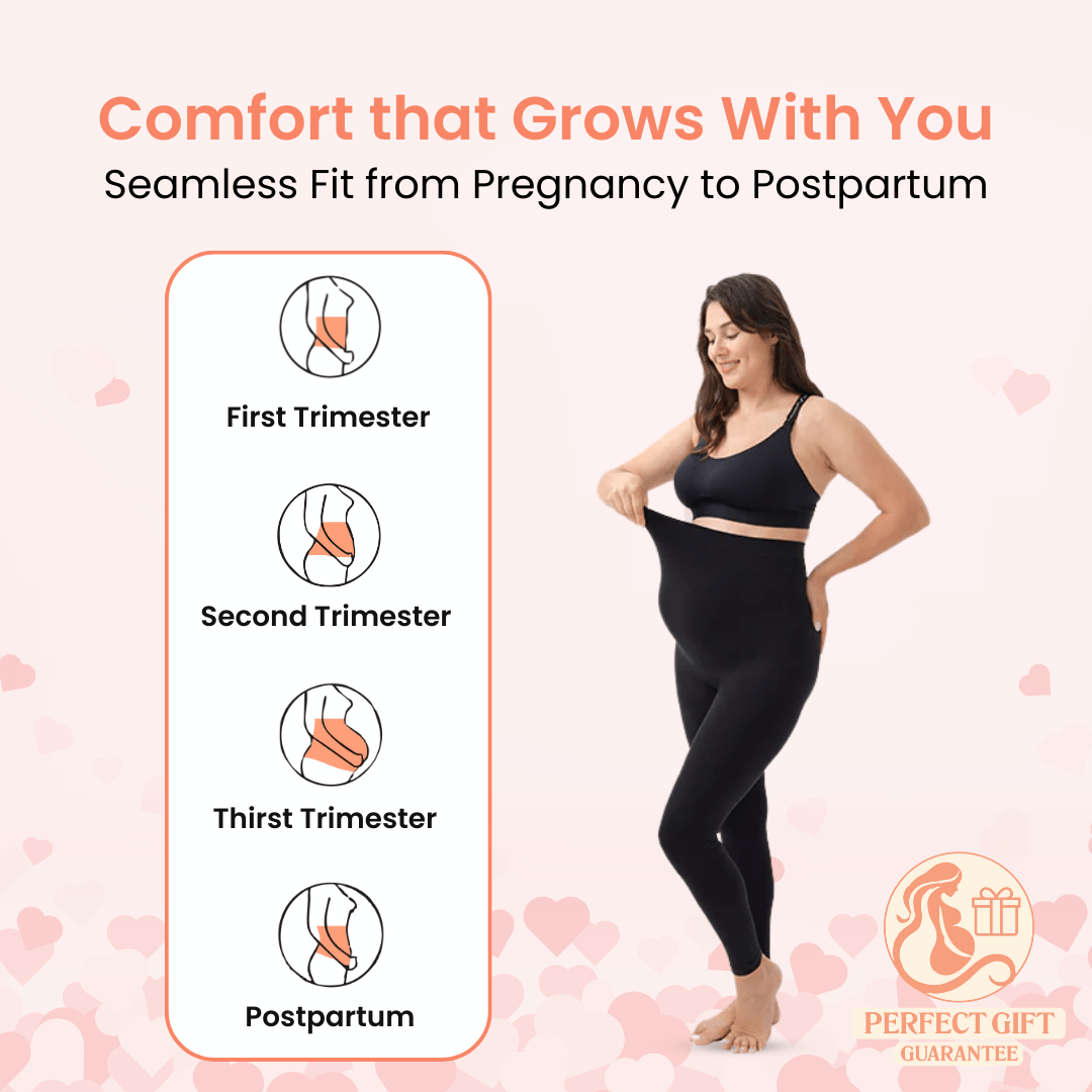 In your first trimester, when comfort is key as your body begins to change, our leggings offer gentle, flexible support, making those early days worry-free and comfortable.